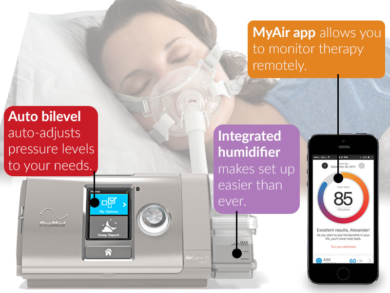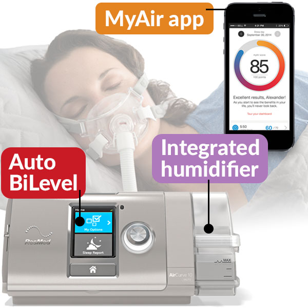 ResMed’s AirCurve is a thing of wonder. The most advanced, intuitive BiLevel machine available, the AirCurve will revolutionize the way you think about CPAP therapy. Today, when you buy the AirCurve you’ll also receive a FREE CPAP Prescription ($99 value).